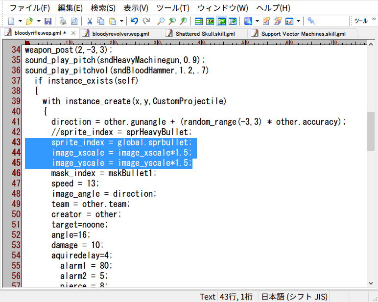 43 sprite_index = global.sprbullet; //画像を赤い弾にする